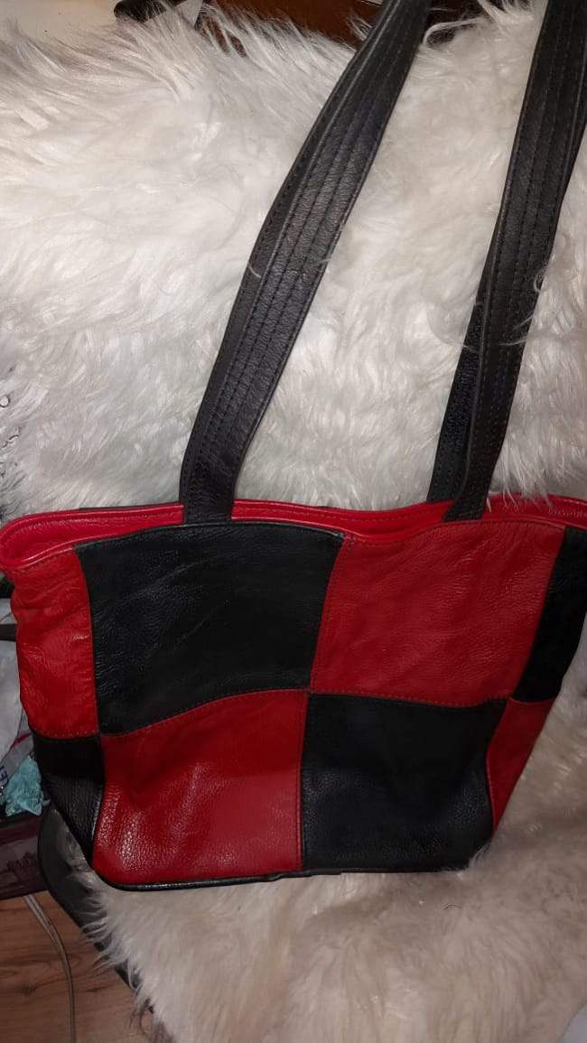 RED AND BLACK PATCHED TOTE